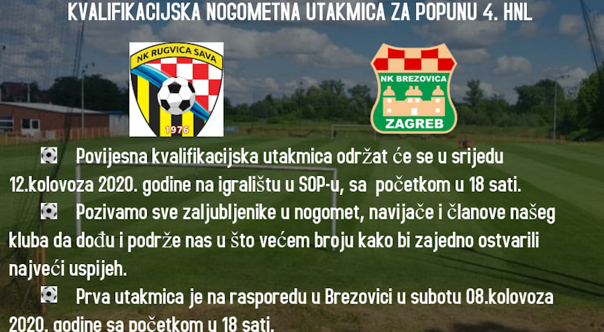 Značaj i važnost druge kvalifikacijske utakmice za popunu 4. NL Središte kao da je vezao noge domaćim nogometašima koji u prvom poluvremenu nisu niti jednom ozbiljno zaprijetili prema gostujućim vratima. S druge strane gosti iz Brezovice su doputovali s prednošću od 3:1 iz prve utakmice i agresivnijom igrom stvarali pritisak prema domaćim vratima, ali i igrali s dozom kalkulacije.